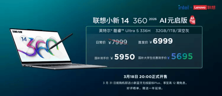 国补到手价6800元起,首发价7199元起,全国2000余家联想门店已正式该预定办事。联想小新14 360 2026 AI元启版,联想小新Pro 14 GT 2026 AI元启版,配合建立了联想复杂且强悍的AI终端生态。学生更享专属教育特惠。以旗舰级硬核设置装备摆设为机能根底!